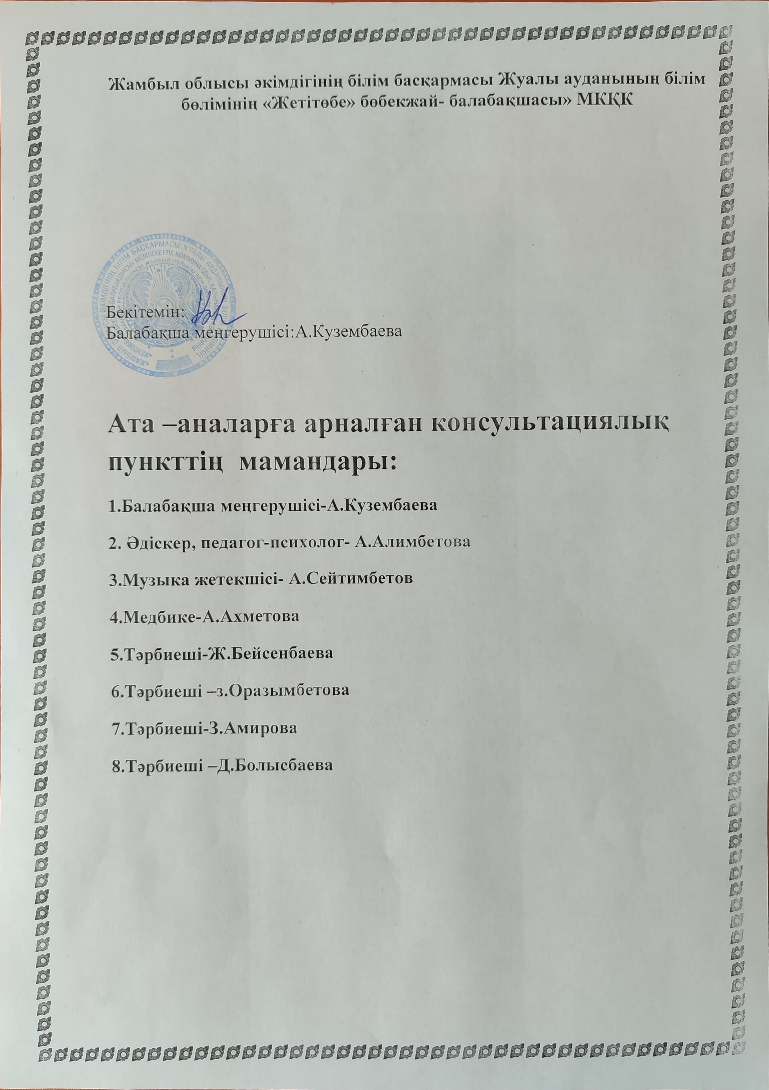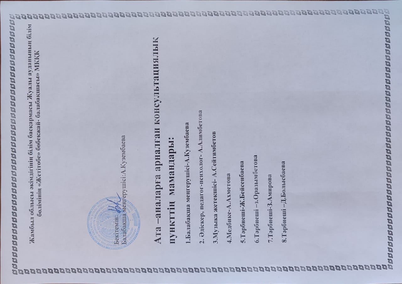 Ата - аналарға арналған консультациялық пункттің мамандары