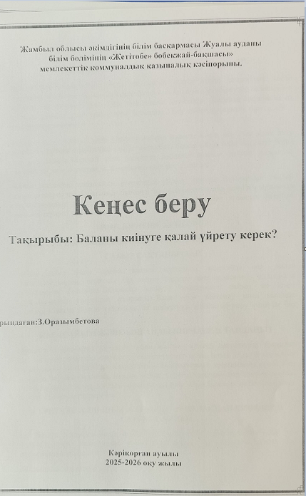 Ата - аналарға арналған консультациялық пункт жоспары 2025 - 2026 оқу жылы